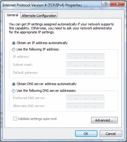 As the previous part Go to the settings for your LAN adapter and change the IP address toObtain an IP address automatically and Obtain DNS server address automatically.
